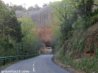 Aquí tomo la primera salida a la izquierda comenzando el ascenso por carretera asfaltada y según la información reflejada en grandes carteles, me restan 7 Km hasta llegar al Monasterio de San Juan de la Peña Viejo. Supone recorrer una distancia superior a la correspondiente a hacerlo a través de sendas que se internan en el monte, pero ante al desconocimiento de la situación de la señalización, opto por esta opción más larga pero más segura.