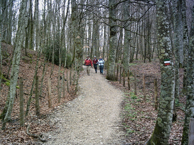 y la estrechez de la senda, cuando no los cantos sueltos que propician los resbalones.