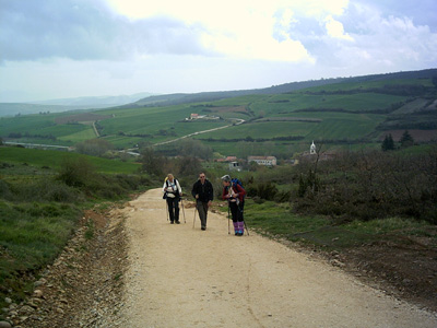 La templanza de la temperatura existente nos permite disfrutar de cada momento, a su vez con las preciosas vistas de sus campos y la proximidad de las poblaciones, nos proporcionan un buen aliciente para su contemplación, mientras otros peregrinos continúan con su marcha socarrona y obstinada con el fin de superar este tramo ascendente.