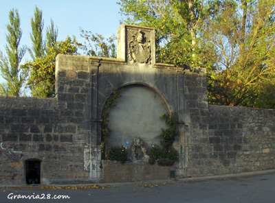 Existe también un sencillo arco de medio punto coronado a su vez por un escudo heráldico, donde aprovechando el tabicado interior del arco se ha colocado un
