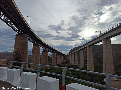ingeniería de los puentes que salvan su cauce, uno para el tráfico de vehículos (carretera AL-3409) y otro para la línea férrea, ambos paralelos en su trazado.