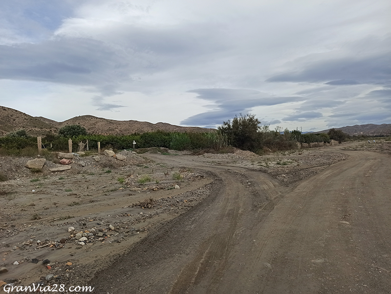 paso de peatones, tomo el desvío a la izquierda que me deja junto al cauce de la rambla del río Nacimiento.