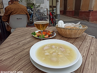 De entrada, incluido en el menú, una espléndida ensalada. Como primer plato una reconfortante sopa de picadillo.