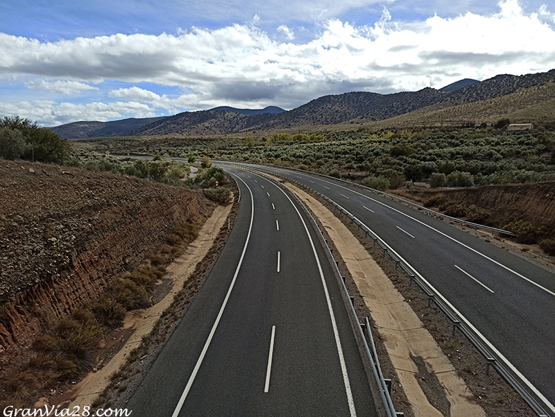 Al pasar sobre la autovía la panorámica que nos ofrece es bastante distinta dependiendo de la orientación. Así hacia el norte, apreciamos una amplia zona