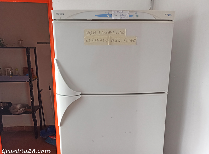 y resto del albergue, poniendo en funcionamiento el frigorífico que también estaba parado y con un cartel “informativo” en italiano aconsejando “no dejes