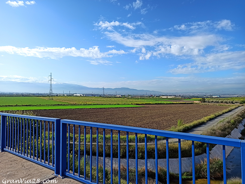 Desde el paso elevado, se puede contemplar la rica vega, la cercanía de Granada y la impresionante mole de Sierra Nevada con su cima coronada por la nieve