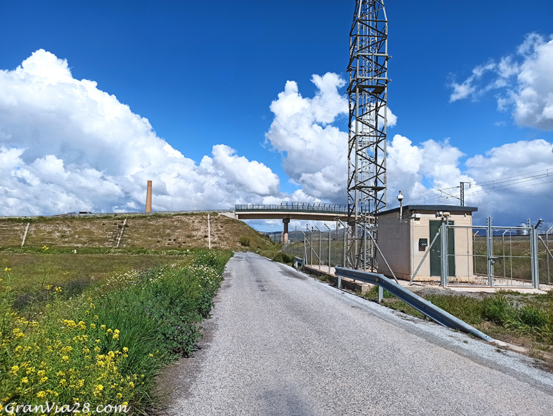 Ahora, manteniendo la dirección noroeste, he de pasar bajo el puente que soporta el trazado de la autovía A-92, junto a la vía férrea del AVE que me acompaña,