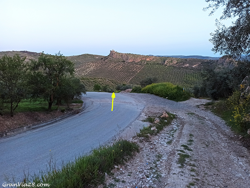 Después de 1,1 Km de descenso llego junto a la carretera GR-3408, aunque sin entrar en ella, la oportuna señalización me indica con flechas amarillas continuar por la derecha,