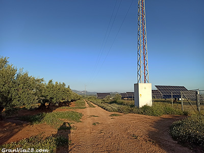 Un Km después todavía prosigue el recorrido a través de un inmenso campo de olivos, únicamente interrumpido por las instalaciones de una enorme planta fotovoltaica.