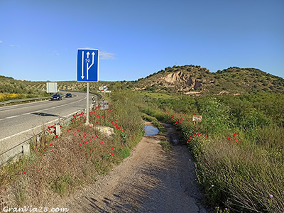Ya en la calzada de la carretera N-432, caminando por el arcén de la misma en dirección oeste tal y como me siguen informando las flechas amarillas, aunque con