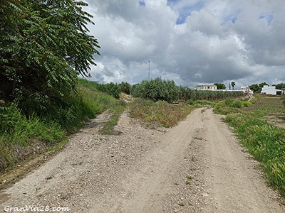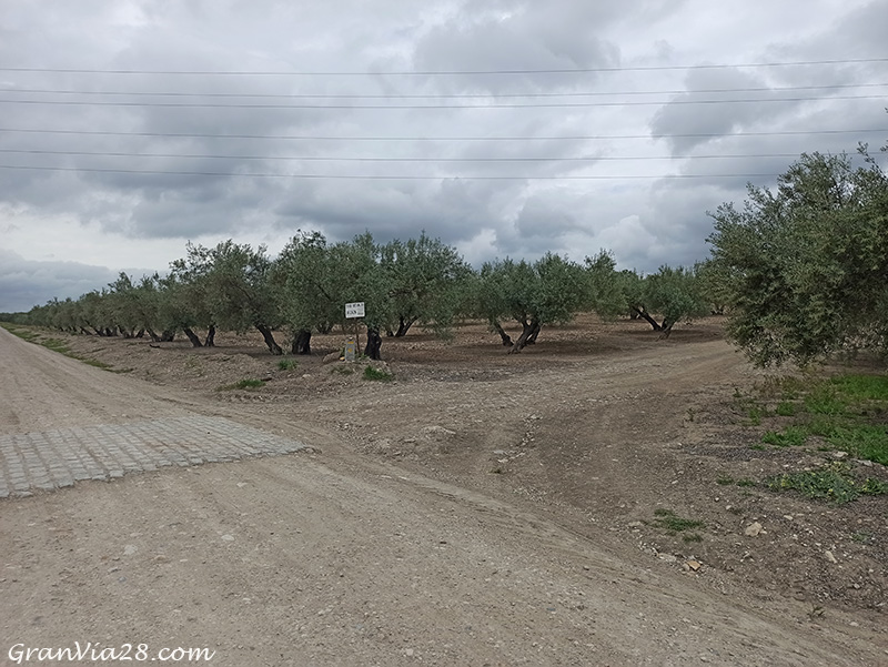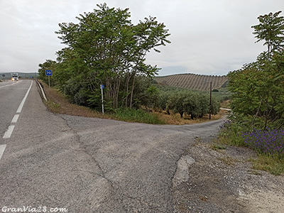 abandonando así esta amplia pista y caminar ahora por una pista secundaria abierta entre olivos.