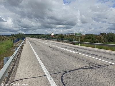 Camino por el arcén de esta carretera N-432 durante apenas 850 metros, sobrepasando el cauce del Río Guadajoz a través del puente existente.