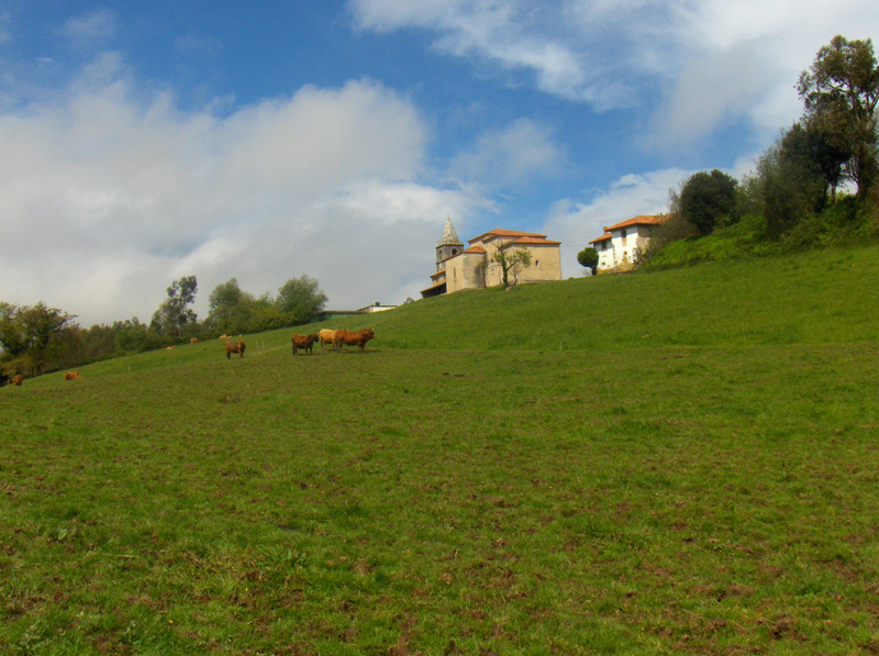 manera que superemos la pendiente hasta llegar a la iglesia de San Pedro, siendo cautos con el ganado vacuno que en estos
