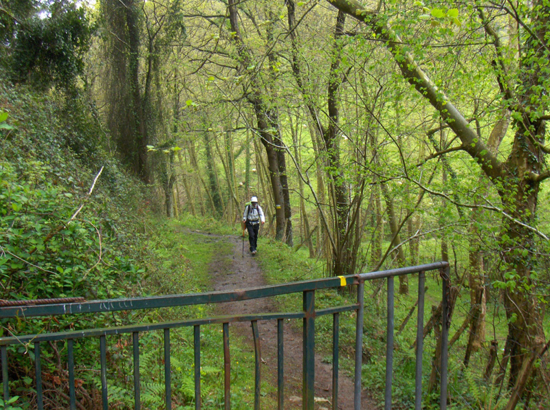A pesar de lo embarrada que estaba la senda boscosa y su pronunciada pendiente, a veces consigue que la mochila tirase con tal fuerza que obligaba a dar unos pasos hacia atrás para no perder el equilibrio, pero con cara de incredulidad,