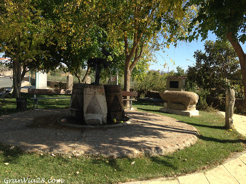 ermita de la Virgen del Pilar y justamente enfrente, una sencilla área de descanso presidida por una fuente.