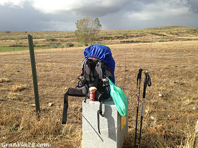 En este punto, nada más sobrepasar las instalaciones indicadas, aprovecho la existencia de un cubo de granito para depositar mi mochila, he decido