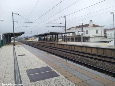 Después de 2,5 km caminando paralelo al trazado de la vía férrea llego a la Estación de Ferrocarril de Carregado, no sin antes bordear una amplia explanada