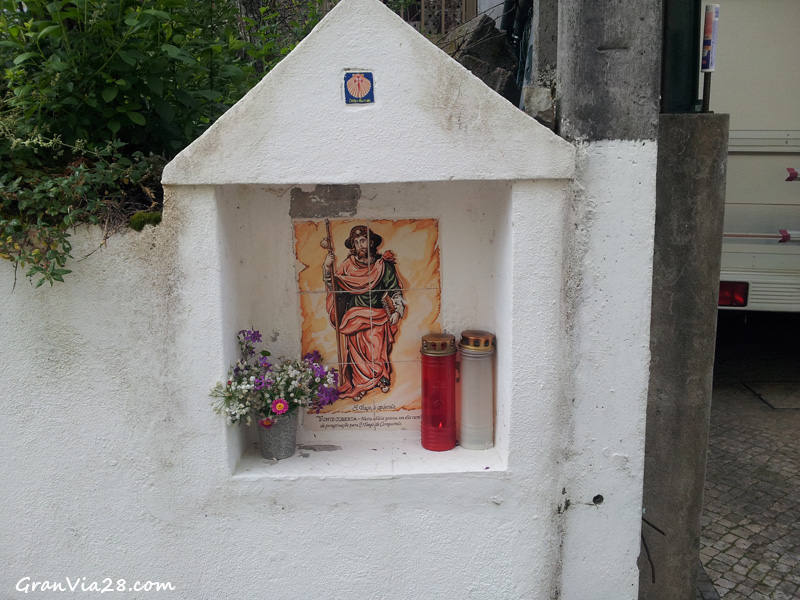 que me recibe con una pequeña imagen del Apóstol Santiago construida con azulejos dentro de su “camarín” que rememora la ruta que seguimos los peregrinos.