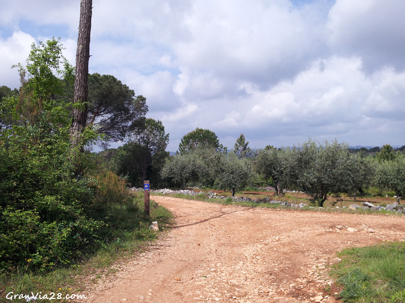 derecha y que me llevaría por sendas y caminos durante 3,5 km hasta regresar de nuevo a la carretera inicial o bien continuar directamente por esta carretera