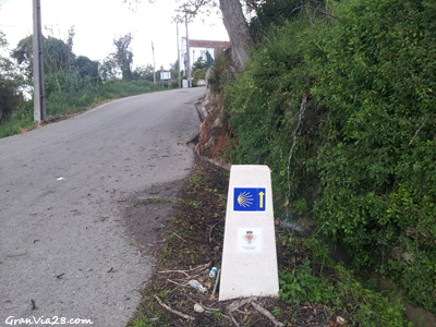 se recibe al peregrino con unos mojones ornados con azulejos típicos de esta tierra.