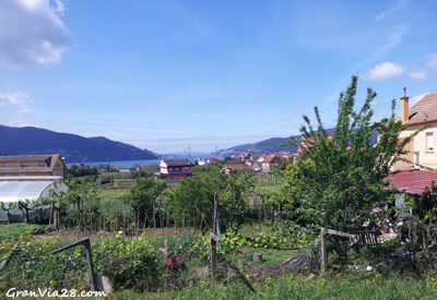 puede divisar un entrante de la ría que constituye la denominada Ensenada de San Simón, con la lejana imagen del espectacular puente por el que transita la