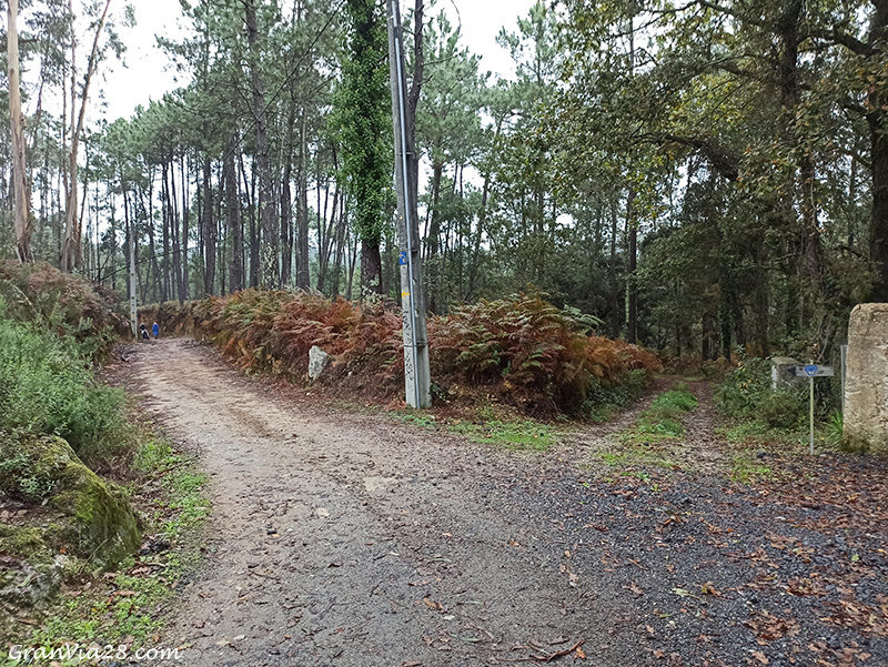 Apenas un centenar de metros más adelante, una nueva bifurcación con un monolito del Camino, donde un pequeño montículo de piedras depositadas por el paso de peregrinos, es señal que no deja a lugar a