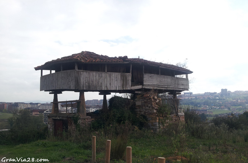Ya en pleno campo y sin perder la visión de Oviedo a mis espaldas, llego al pequeño núcleo de San Lázaro de Paniceres con la inmensa “panera” que te lleva a otras