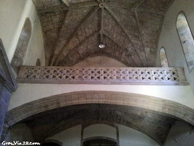 baranda del coro cobijada bajo la estructura nervada de su techumbre.