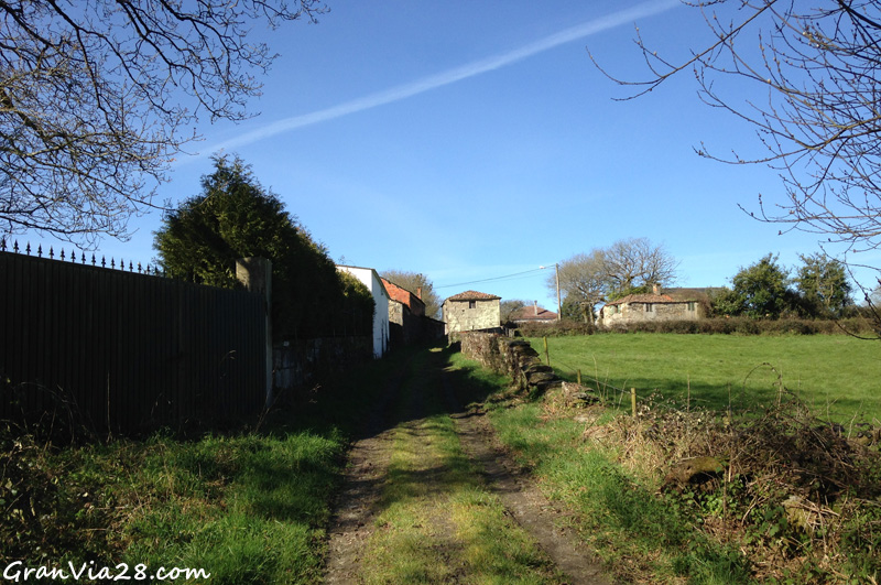 Han sido apenas 200 metros por esta vereda hasta salir a la carretera LU-P-2901 que tomaré hacia la izquierda. Esta es la aldea de O Carvallal, reconocible