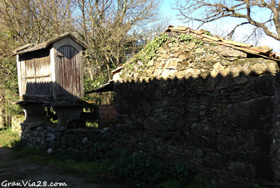 puede contemplar la típica construcción rústica gallega presidida por el inseparable hórreo.