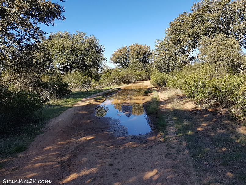 Mientras tanto, por el margen izquierdo, un espeso bosque cerrado de matorrales y encinas da cobijo a una abundante presencia de conejos como puedo apreciar durante el trayecto.