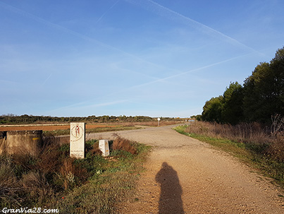 Recorridos estos centenares de metros por el asfalto, se vuelve a abandonar la carretera por la derecha de acuerdo con las indicaciones del propio Camino.