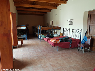 A mi llegada, los vecinos de cama, dos peregrinos con quienes ya había coincidido, uno de ellos danés, me indican la posibilidad de ocupar la cama restante, enorme para mis hábitos de litera, por lo que agradecí el detalle.