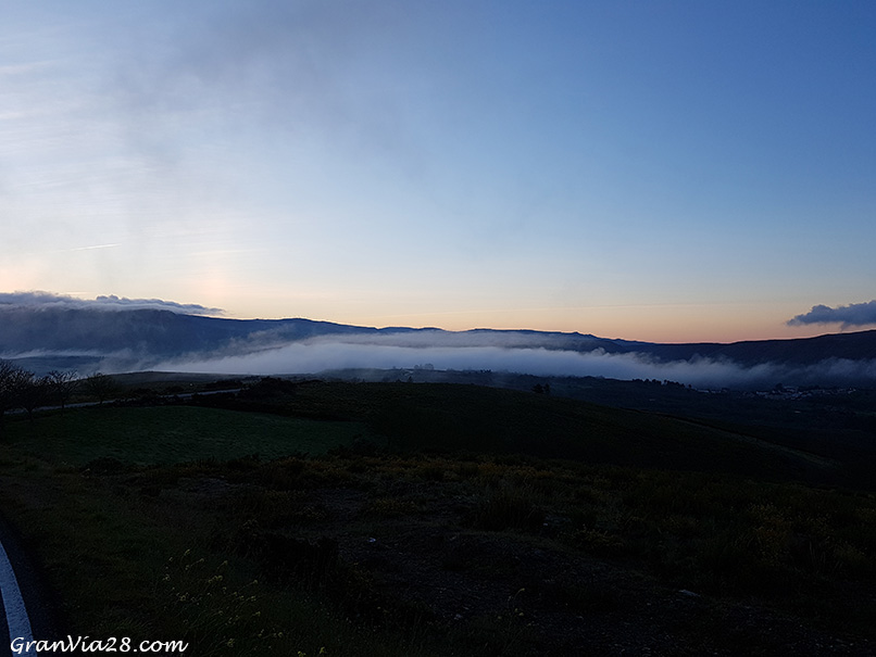 Ya en el horizonte se llega a vislumbrar, todavía con las luces del amanecer, la existencia de nubes bajas, lo que hace considerar la altitud por la que transitamos.