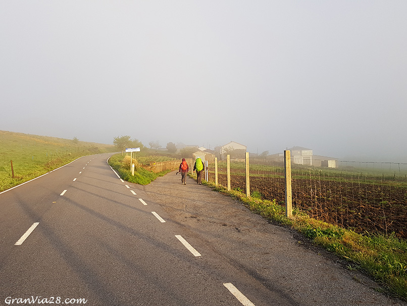 La densidad de las nubes bajas se va disipando poco a poco, pudiendo observar como ya me preceden cinco peregrinos, aunque iremos alternando las posiciones a lo largo del recorrido.