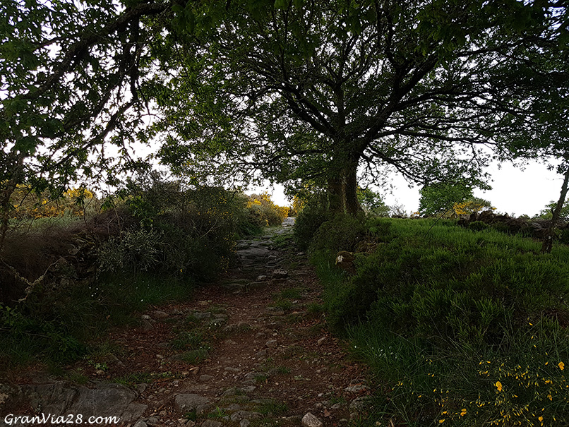 Ya estamos en el último tramo del ascenso, algo más suave y ahora por una senda principalmente de tierra, aunque no terminan de desaparecer las grandes losas de piedra, pero rodeados de vegetación.