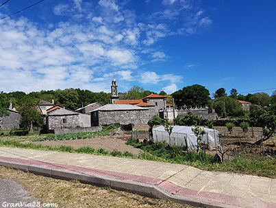 La carretera continúa serpenteando por el valle, dejando en el margen derecho otra aldea, aunque esta ya parece ser de mayor entidad, se trata de la parroquia de Coiras, distante apenas 200 metros.